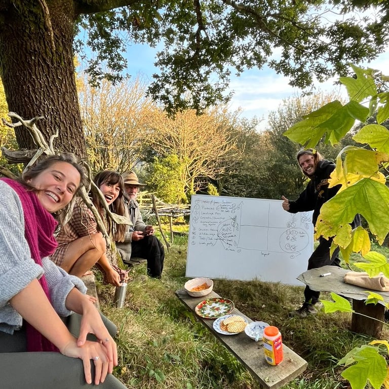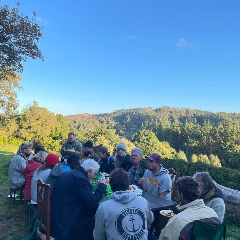 Creating a café and amphitheatre, accessible outside spaces such as the food forest to gather. We aim for a high degree of communtiy self-sufficiency.