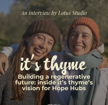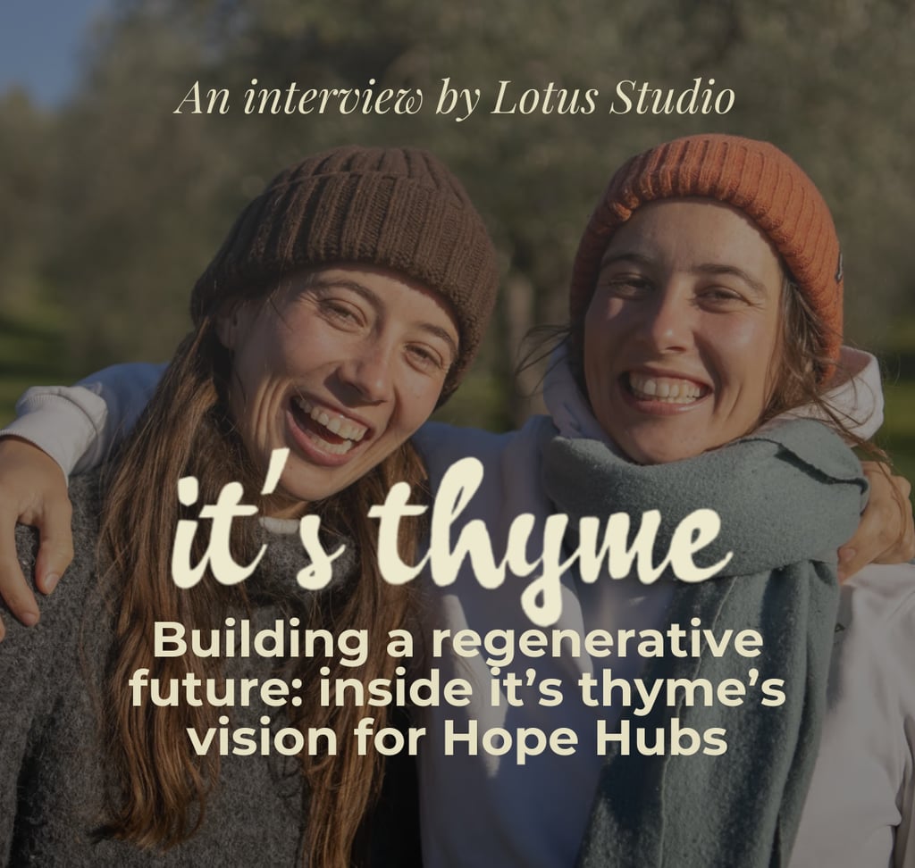 it’s thyme is a regenerative initiative founded by twin sisters Hannah and Julia Eckert, who turned their passion for sustainability into a movement to create Hope Hubs—community and education centers dedicated to regeneration and ecological harmony.
