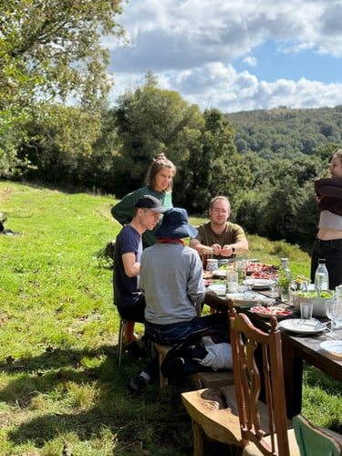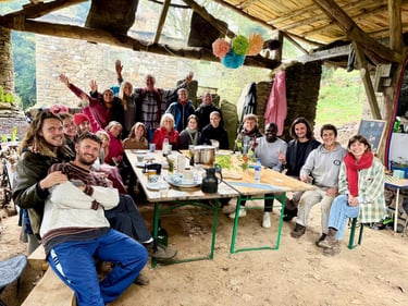 We prepared a program full of hands-on action and adventures in the beautiful Galician landscapes 🌾🌳🌅. The motto: getting out of the head, into regenerative action ( bioconstruction, permaculture, communitybuilding) and into the spirit of community 🛶🌈.